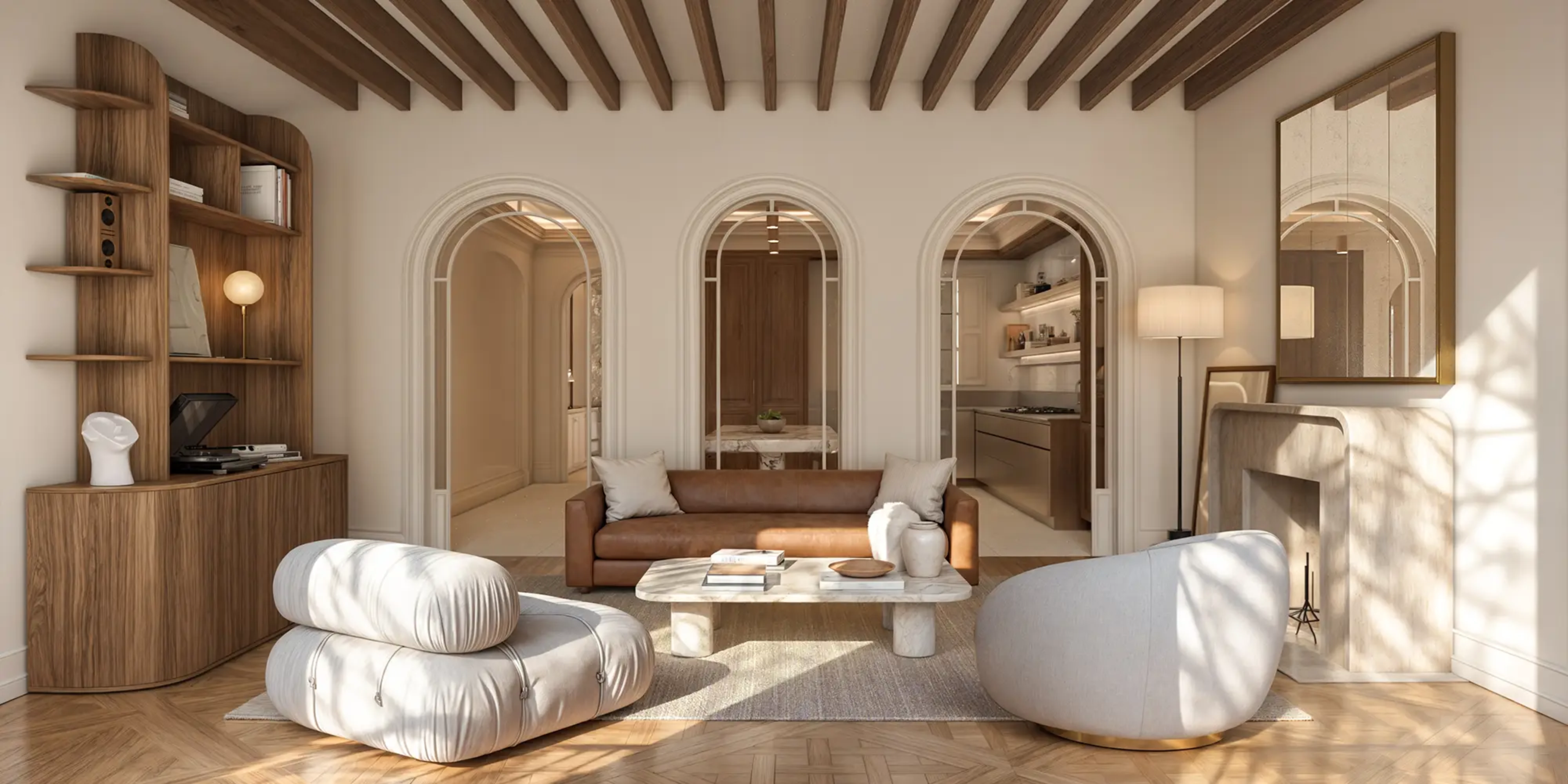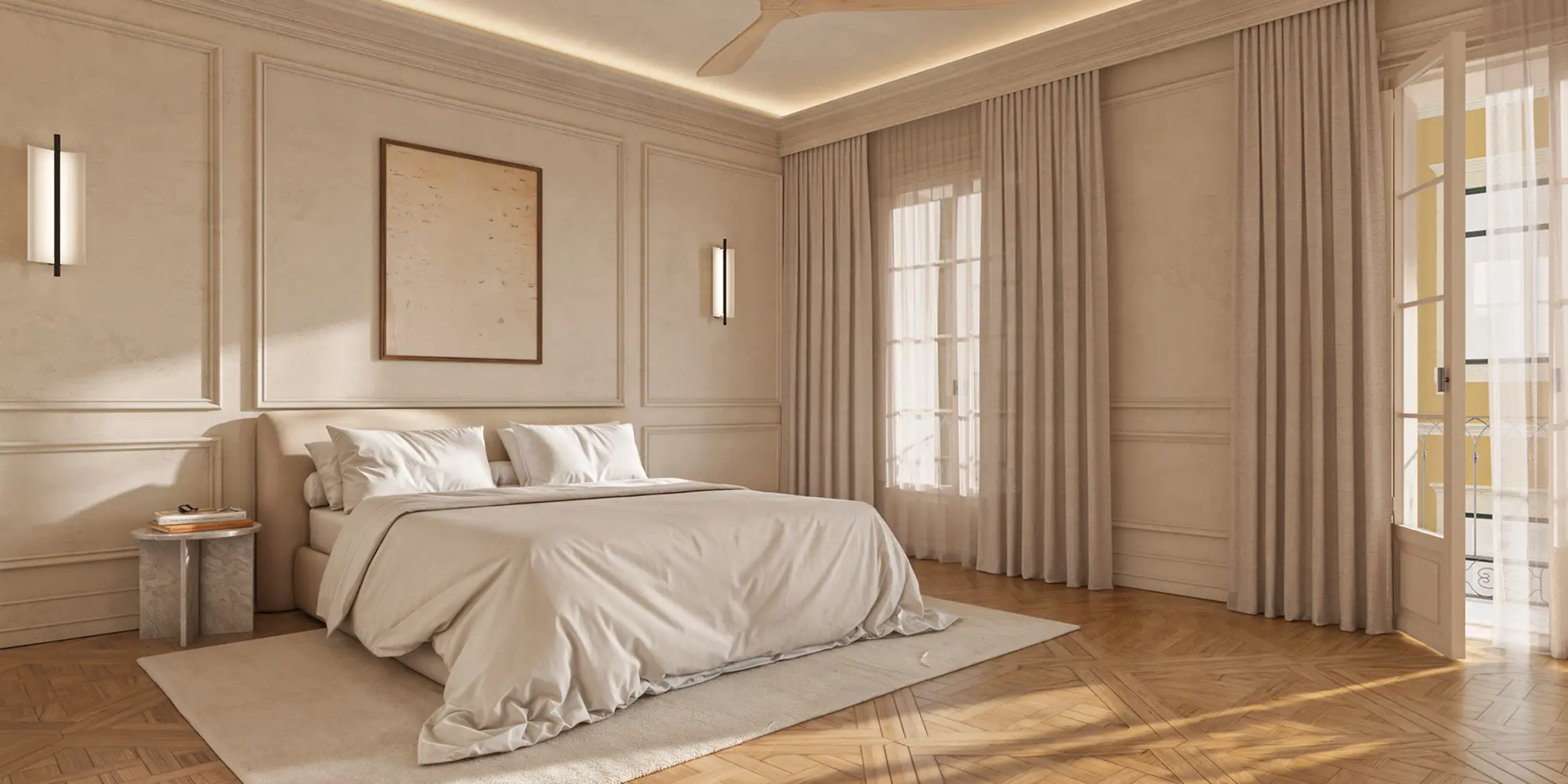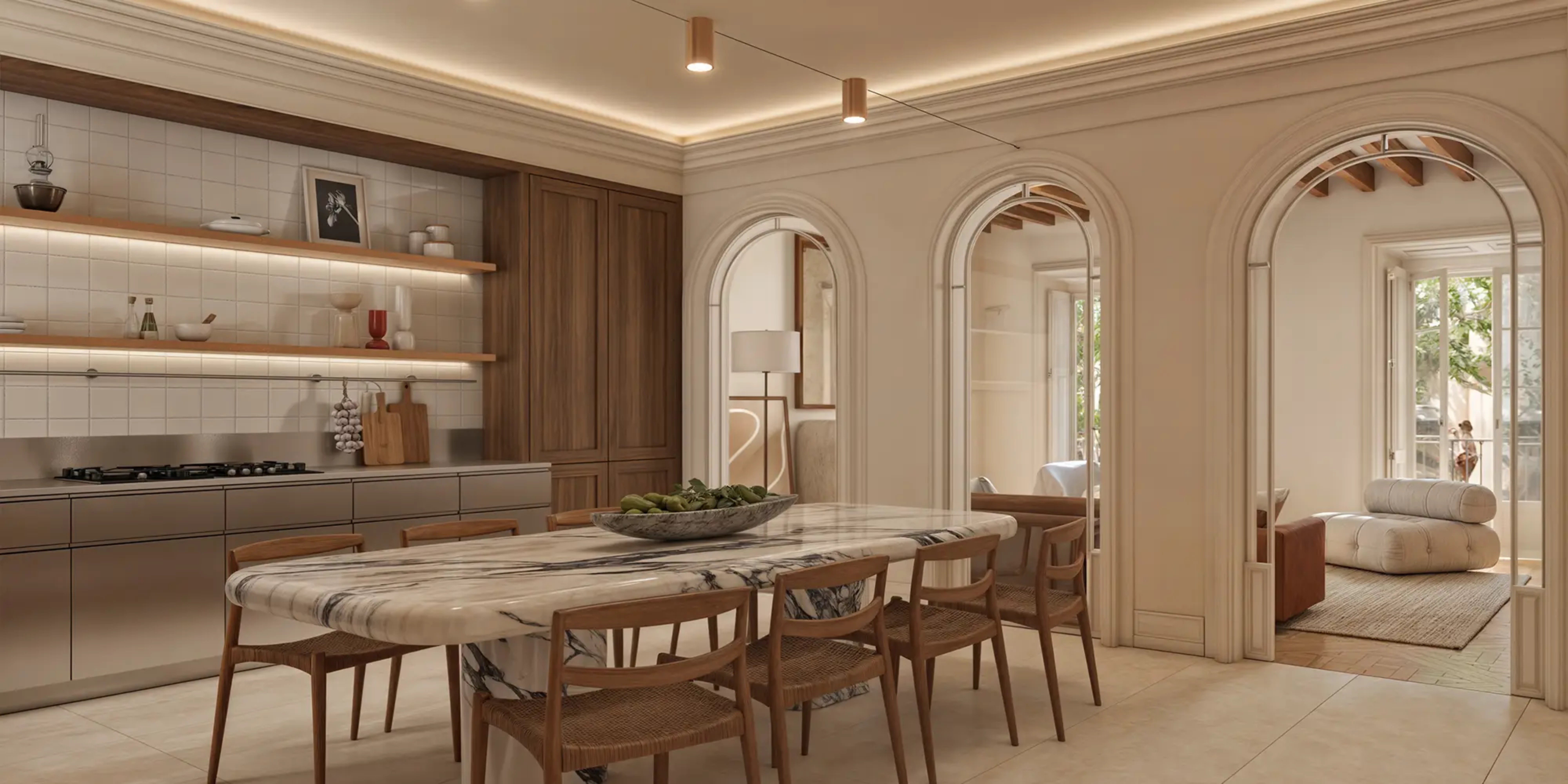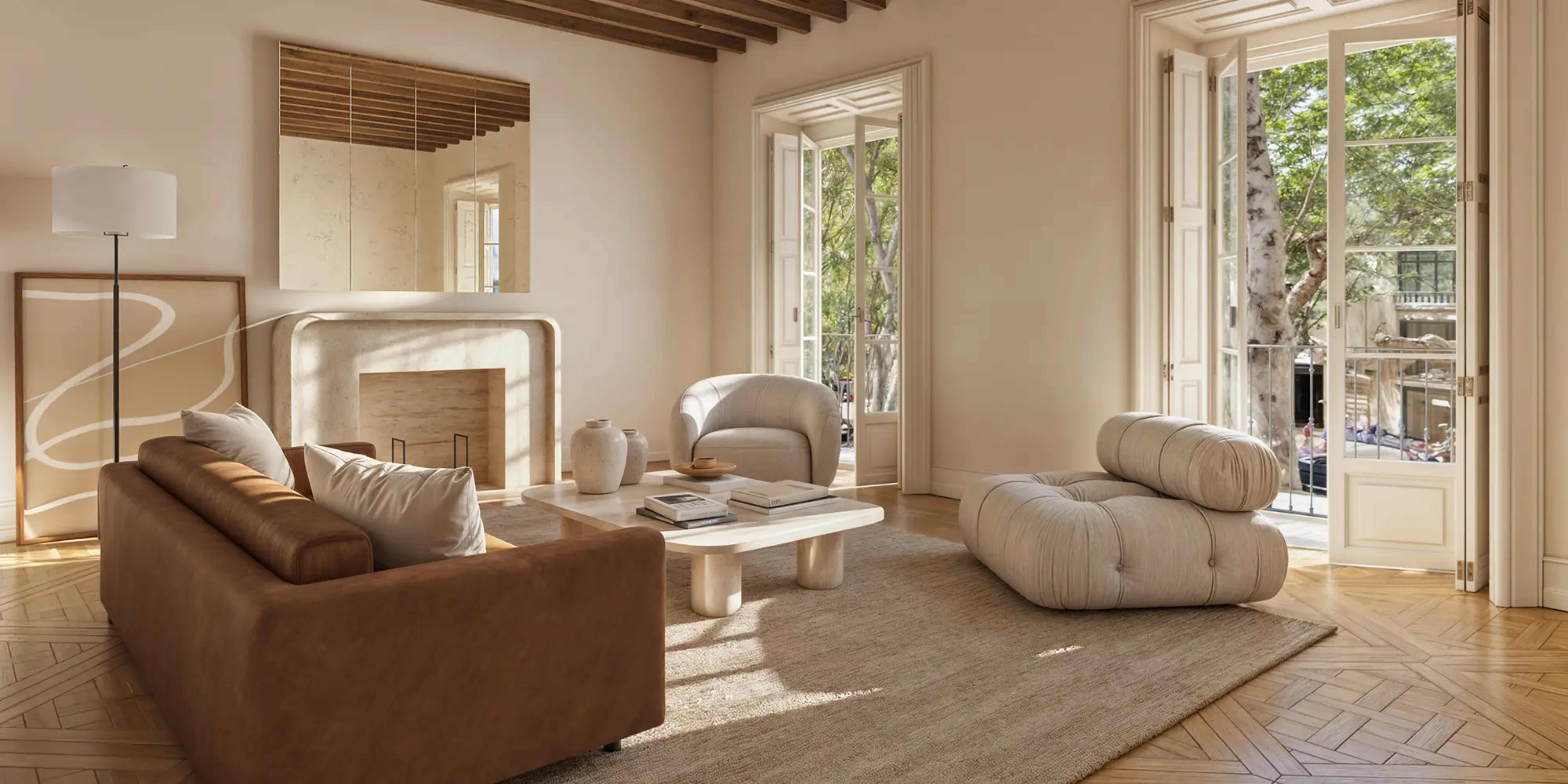 This historic apartment, located on the iconic Passeig del Born in Palma de Mallorca, has undergone a meticulous renovation that preserves its original essence while adapting to contemporary needs. The design balances the architectural richness of the past with a modern and functional approach, creating a sophisticated and welcoming environment. The layout has been designed to maximise comfort, featuring spacious, fluid living areas that naturally interconnect, promoting togetherness and well-being while maintaining the historical charm of the space.